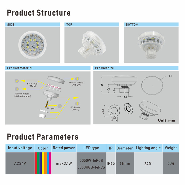 | LED quantity: | 5050W-16PCS 5050RGB-14PCS | |